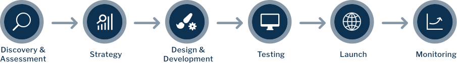 All of our website projects begin with a Discovery and Assessment phase. During this phase, our team conducts an initial analysis to understand your brand, your target audience and marketing/operational goals. The team looks to obtain, and review information deemed critical to achieving your website objectives.